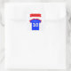 The red birthday banner and the blue sports t-shirt have a background of little blue stars on these fun 10th birthday stickers. You can personalise them by adding the birthday child's name. Ideal for adding to party bags for your guests to thank them for coming to the party. Or you can customise the text on the red banner according to your needs.