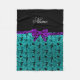 Custom name aqua glitter gymnastics purple bow fleece blanket