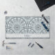 Elevate your workspace with our Custom Name Art Deco Floral Harmony Grey Mandala desk mat. This elegant desk mat features a seamless arrangement of overlapping mandalas in a sophisticated monochrome Silver Smoke palette, adorned with intricate floral and geometric motifs. The soft curves and dotted accents, inspired by the Art Deco scallops design, create a harmonious and rhythmic flow, bringing both style and balance to your desk.