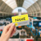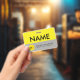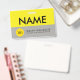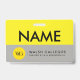 Custom name badge, alternative to magnetic name tags. Featuring bright yellow and light grey.