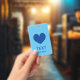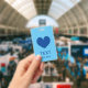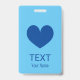 Custom name badge with blue heart logo ID badge