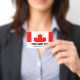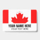 Custom name badge with Canadian flag. Plastic office tags available with clip on and lanyard option. Customisable text. Add a photo on the back optionally. Useful ID for office, volunteer work, events, meeting, gathering, delegation, sports team, group, Canada Day party and more. Red Canadian maple leaf flag design.