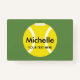 Custom name badges for tennis player and coach. Yellow tennis ball template design. Add your own name, surname, family name, last name, initial letters, title, function, etc. Classy badges for office personnel, staff, company employees, volenteers, coworkers, colleagues, corporate workers, teachers, trainers, business managers, teammates, instructor, boss, crew, members, friends, guests, etc.