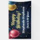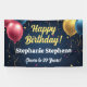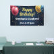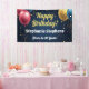 Festive and colourful balloons and confetti decorative customisable birthday partybanner. Pink, yellow and blue balloons on navy blue background with gold confetti and script font. Celebrate a 30th, 40th, 50th, 60th, 70th or any age party or fun office celebration for men or women with this customisable surprise party banner. Celebrate the accomplishments and another year of a professional woman or man.