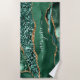 Custom Name Beach Towel Agate Green Glitter Marble