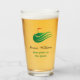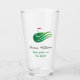 This best golfer beer glass is shown with a golf course graphic print and a sample custom name, customise this item and change the sample name to yours..