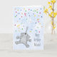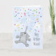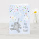 Cute birthday card features an illustrated, joyful elephant showering colourful confetti into the blue sky. Customise the front for child's name to make a truly personalised card. This popular jungle animal is sure to bring a smile to any child's face!