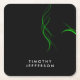 Custom Name Black Green Curves Elegant Modern Square Paper Coaster
