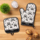 Custom Name Black White Butterfly Pattern Oven Mitt & Pot Holder Set