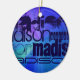 Custom Name; Blue & Abstract Purple, Green, Blue Ceramic Tree Decoration