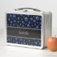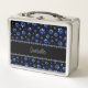 Custom name, blue glitter dog paws metal lunch box