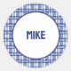 Custom Name | Blue Plaid Classic Round Sticker