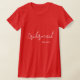 Women's t-shirt is shown in a crew neck and short sleeves style in red with white colour text: Bridesmaid and a custom sample name.