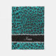 Custom name bright aqua glitter leopard print fleece blanket