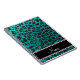 Modern,chic and trendy personalised custom name bright aqua glitter leopard spots pattern (animal print) with a beautiful black diamonds stripe (not real diamonds) with hearts and dots personalised with your name gifts or monogram gifts or your initials. Pretty girly leopard print gift ideas.