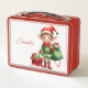 Custom Name Christmas elf with a sack of gifts Metal Lunch Box