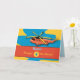 For that special birthday, you can add the child's name and their age. This helicopter is brightly coloured in hues of orange, blue and yellow. This card will be a keeper!