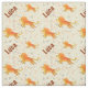 Cute cartoon lion print with a light dotted background personalised fabric for kids. Make a special gift, piece of clothing or a decorative item for a child, boy or girl, who loves wild animals, especially lions. Customise it by replacing the sample name with the one you want to see on the fabric. Light background with earthy gentle orange, yellow and brown tones.