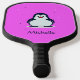 Custom name cute penguin on pink pickleball paddle