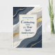 This elegant employee work anniversary design celebrates twenty five years of service with a personalized name featured on the front. Flowing navy and gray shapes, refined gold accents, and a clean cream center panel create a polished presentation suitable for professional recognition. Designed to honor commitment, dedication, and continued contributions, it is a meaningful way to recognize an employee reaching their twenty five-year work anniversary.