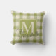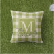 Farmhouse country style autumn green and off-white ivory gingham plaid pattern, with the option to customise or personalise with a family monogram and name or (limited) text of your choice. Fun pretty fall coloured outdoor cushion to adorn your patio or cabin porch with and get in the mood for fall season, the Thanksgiving holiday and Halloween.