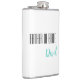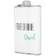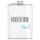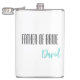 Flask for the father of bride is shown in white with black and teal text and has a sample name.