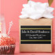 A black background is on this address sticker. A faux gold square border is above and below the text. Personalise your stickers with your name and address.