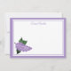 Custom Name Flat Note Card is shown in white with a purple double border trim and a lovely purple lilac flowers print.