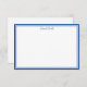 Custom name flat note card shown in the basic matte white paper with a slim royal blue colour double border trim.