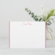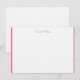 Custom name flat note card shown in the white linen paper with a slim hot pink border trim.