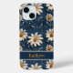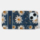 Cute embroidered floral phone case featuring daisy stitching on denim texture with a personalized name band. Add your name for a unique, handmade style. Durable and perfect for everyday use, gifts, or cottagecore style fans.