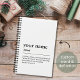 Modern black and white Notebook featuring a personalised definition of any custom name or word in minimalist dictionary style typography. Write your own meaning of a dear friend or your favourite word using the text boxes when you click "Personalise". You can also enter the Design tool and change the white background colour to any colour you like. Makes the perfect personalised gift for your best friend, family member or partner in crime.