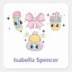 Personalised name girl cute pretty pink, purple and blue pastel on white background sticker. For kids to put on there books or on there back to school supplies, so nothing gets lost.