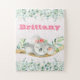 Custom Name Girls Koala Bear Pink & Greenery Jigsaw Puzzle