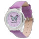Kids learning watch with Glitter Butterfly, Personalized Name and Purple Background.