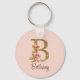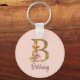 Custom Name Gold Foil Blush Pink Roses Letter B Key Ring