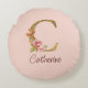 Custom Name Gold Foil Blush Pink Roses Letter C Round Cushion