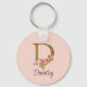 Custom Name Gold Foil Blush Pink Roses Letter D Key Ring