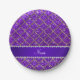 Girly, chic and trendy Personalised custom name quatrefoil indigo purple glitter (not real glitter) gold moroccan trellis pattern with a pretty purple diamond stripe ribbon (not real diamonds) with beautiful hearts and dots personalised with just add your name gifts or monogram gifts or your initials. Featuring an elegant and traditional white fancy lettering. These sparkly retro gifts are perfect for women and girls.