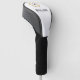 This golf club cover is shown with a custom name sample, just customise and change the name to yours. Shown in a black and white design with white trim.