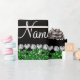 Modern, girly, chic and trendy Custom name green glitter (NOT REAL GLITTER) roller derby girl silhouettes, roller skates, stars, hearts and bows ribbons pattern background and with pretty black diamonds (faux not real diamonds) with sparkly hearts and dots stripe personalised with just add your name gifts or monogram gifts or your initials for a unique gift. Roller derby gift ideas for women and girls. Ideal for roller skating girls / women.