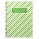 Unique kids office stationery notebook with a lime green and white stripe pattern, custom name template / subject title template. A cute and cool gift for back to school.
