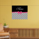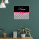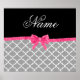 Personalised custom name quatrefoil grey moroccan trellis pattern with a pink glitter bow (not real glitter) ribbon personalised with just add your name gifts or monogram gifts or your initials. featuring an elegant and traditional fancy lettering