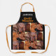 The design has different types of barbecue meat photos all over and has grill master text with your name on top of the apron.