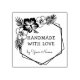 Design features "HANDMADE WITH LOVE" and your custom name in cute typography framed by a hand-drawn botanical wreath. Add a personal touch to your creations with these rubber stamps! You can change this text to your custom wording by clicking on "Personalise this template". For more advanced changes (like fonts and placement),
