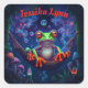 Custom name Hippie Peace Psychedelic Tree Frog Square Sticker
