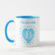 The design features a blue polka dot surrounded heart with template name at the top and monogram initial inside the heart. Personalise the text, remove any or all text or edit using the design tool to select a font style, size, and colour you prefer. The design it will change on the front and back. A sweet personalised wedding or housewarming gift.