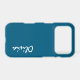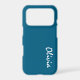 Custom name iPhone 17 pro case, slim is shown in a solid ocean blue color.