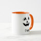 .: This simple, minimalist design is perfect. It includes an eye lash laden Jack O' Lantern, a name of your choosing, and adorable colourful handle and interior.