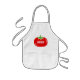 Custom name kids cooking apron with red tomato icon. Vegetable vector design. Healthy food cooking and baking aprons for children. Cute small BBQ aprons in yellow white and khaki beige. Cute favor gift for Birthday party. Also nice for art and crafts, painting or drawing. Add name of child. Unisex, suitable for little chef boy or girl.